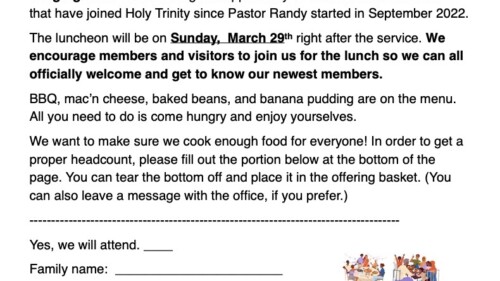 No meals on Ash Wednesday (2/18), Maundy Thursday (4/2), or Good Friday (4/3).